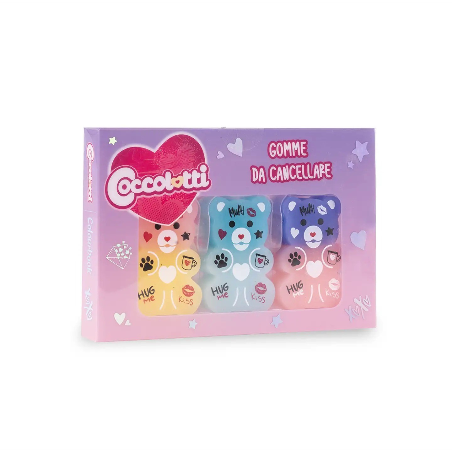 Una confezione regalo che conserva 3 gommine da cancellare da collezione Coccolotti by Colourbook! Gli amatissimi orsetti con i gradienti e le grafiche della collezione Love&Tell cancellano teneramente ogni tratto di matita. La loro texture ultra morbida garantisce un facile utilizzo.