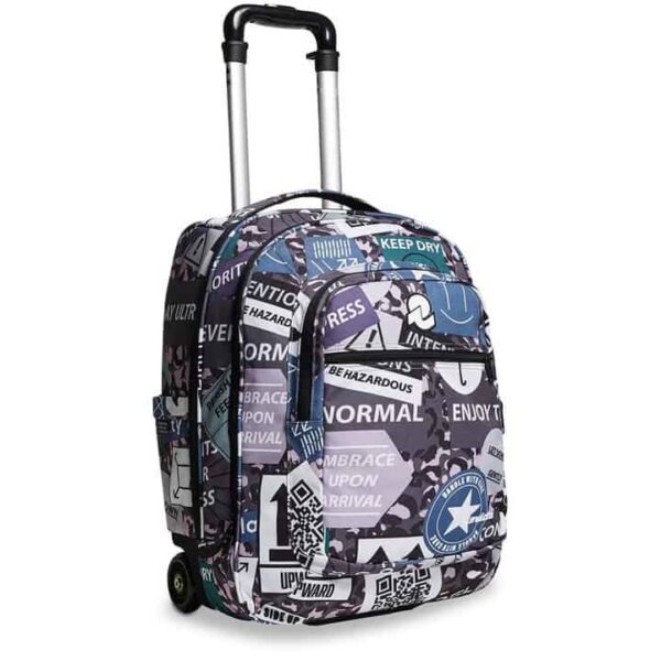 Apertura totale “uso viaggio”, ruote da 75 mm, spallacci a scomparsa totale nello schienale quando utilizzato come trolley, barra doppia telescopica con doppia regolazione, fondo rigido antiurto con piedino antiribaltamento, tirazip con cordino, patch invicta, logo invicta in serigrafia, etichetta bandierina alta definizione sulla tasca laterale, crossover system, doppio scomparto