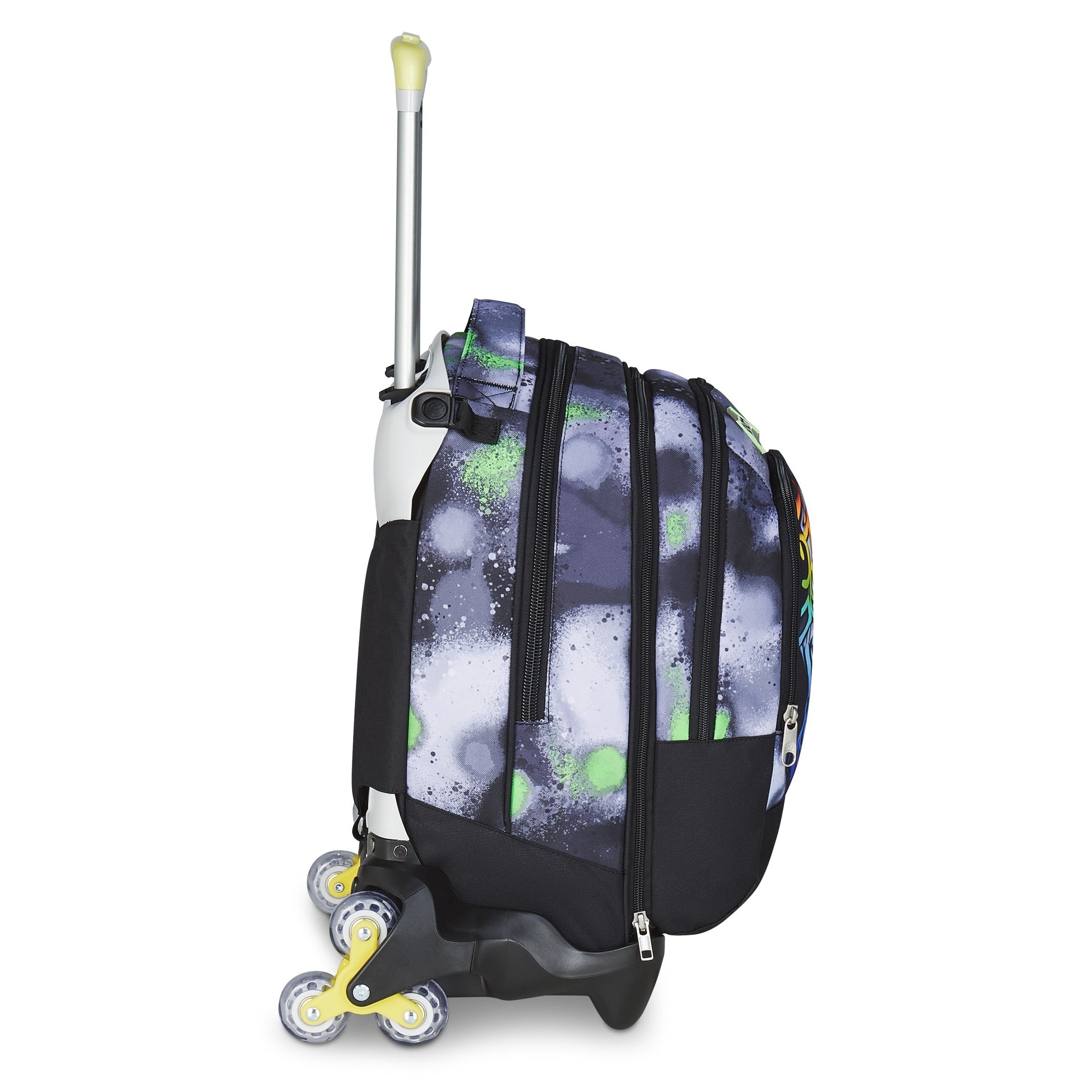 Trolley smontabile dotato di un sistema a tre ruote. Sistema Crossover con clip per il fissaggio dei nastri, barra telescopica doppia con due diverse regolazioni dell’altezza. Fondo rinforzato e protezioni angolari. Può essere utilizzato in tre modi: 1) come trolley con spallacci completamente ripiegabili nello schienale; 2) come zaino senza dover rimuovere il carrello; 3) come zaino quando è completamente staccato dal carrello.