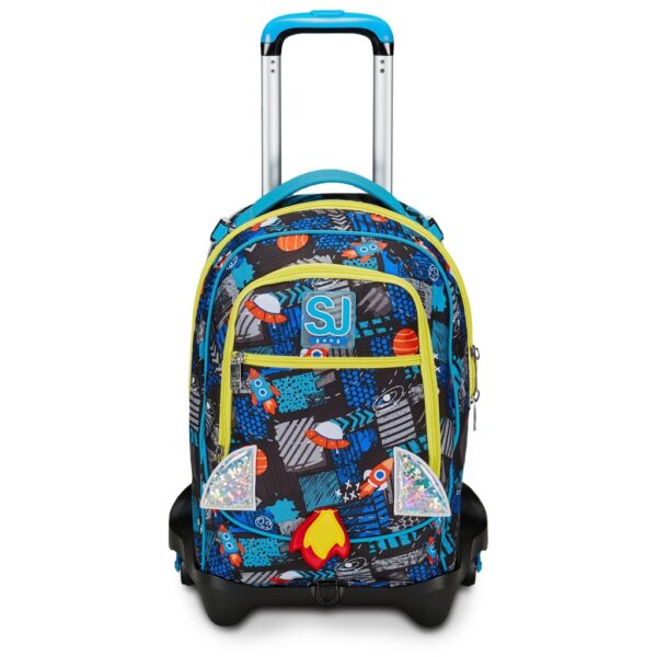 Lo zaino con carrello staccabile Trolley SJ Gang Jack 3 Ruote è progettato con un sistema a 3 ruote su ciascun lato. Questo zaino offre spazio sufficiente per contenere libri, quaderni, o l’abbigliamento per l’allenamento. Grazie allo schienale e agli spallacci imbottiti, è comodo da trasportare sulle spalle. Se invece lo si collega al carrello con doppia barra telescopica, protezioni agli angoli e fondo rinforzato, diventa un trolley pratico, stabile e sicuro da trainare.