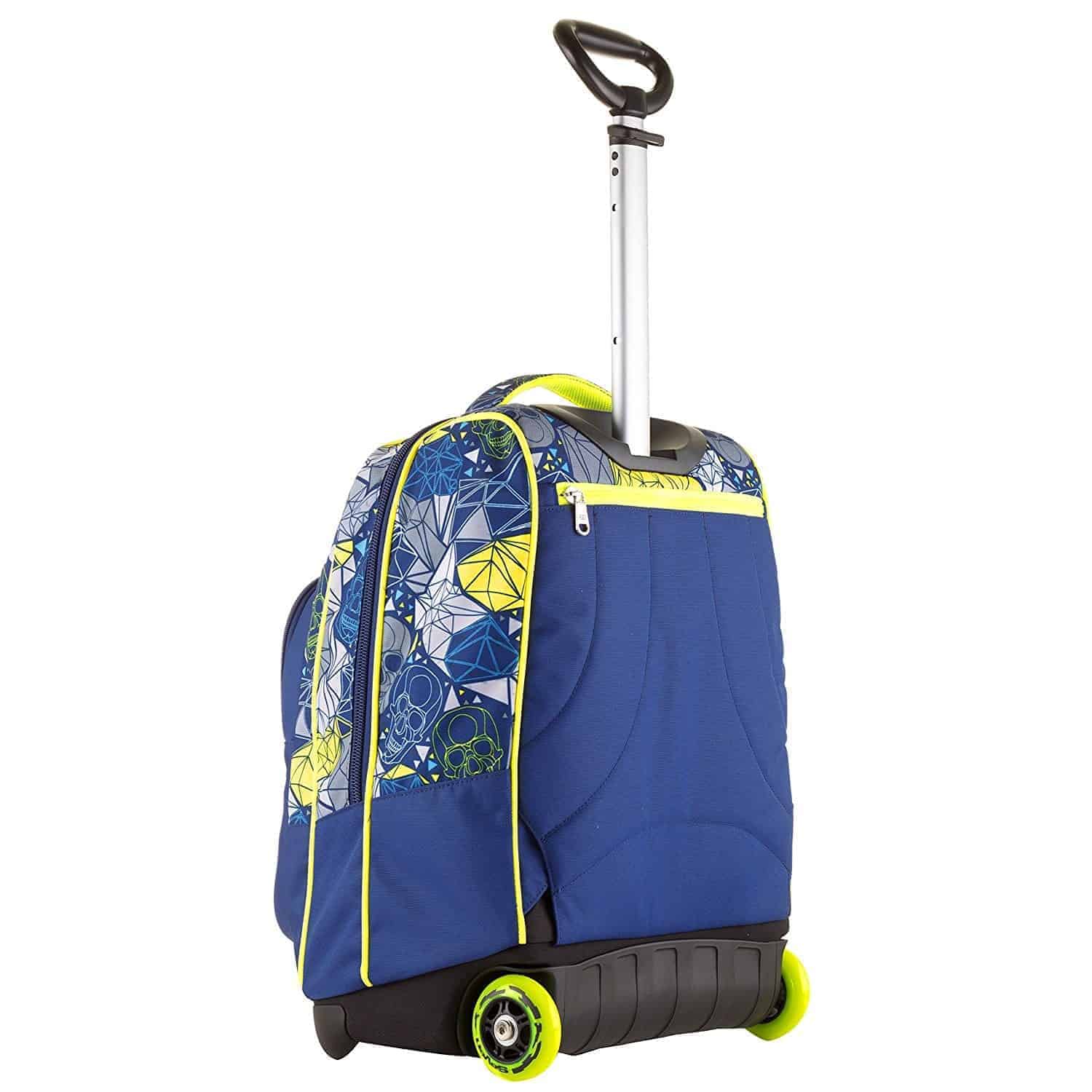 Funzionali trolley: barra singola telescopica; ruote da 75 mm; spallacci a scomparsa totale nello schienale e e sollevati grazie al cross-over system quando utilizzato come trolley; fondo preformato integrato per garantire la stabilità del prodotto e la protezione del contenuto
