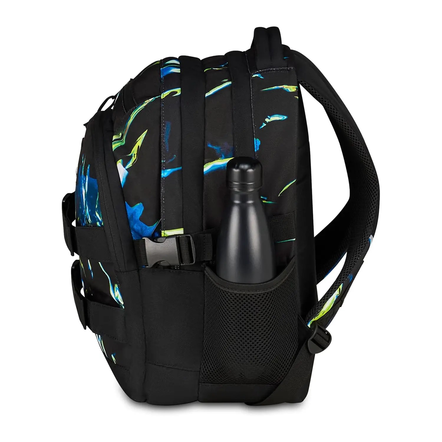 - Due tasche laterali realizzate in tessuto elastico e idrorepellente