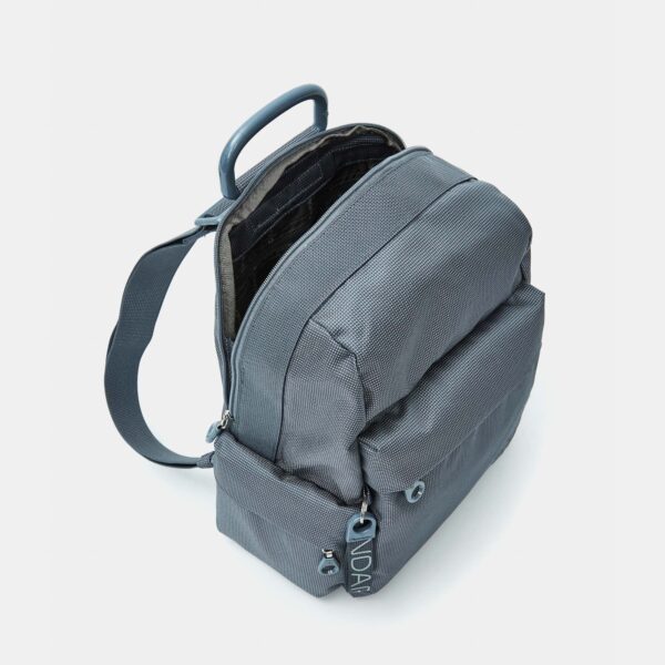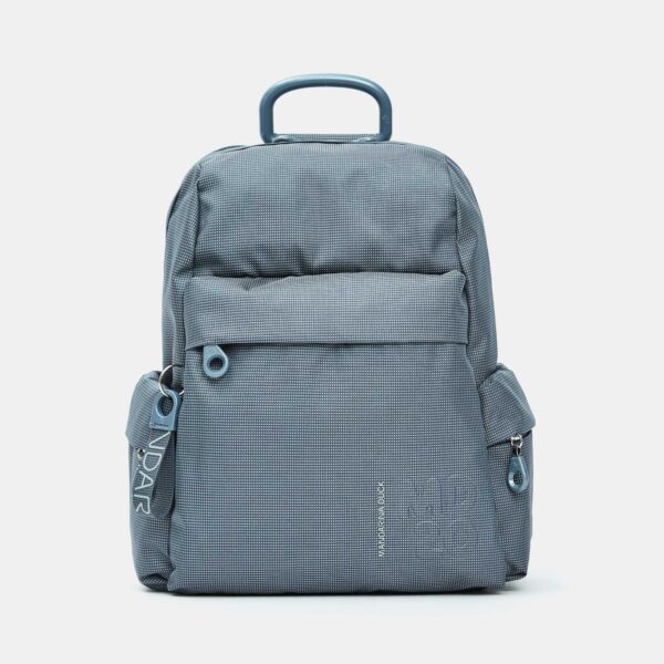 Zaino di medie dimensioni in mitrix, storico materiale del marchio Mandarina Duck caratterizzato da leggerezza, versatilità e da un originale effetto cangiante. Gli spallacci regolabili uniti alle tasche zippate interne ed esterne lo rendono comodo e funzionale. Grazie al restyling degli accessori il suo look è più moderno e contemporaneo.