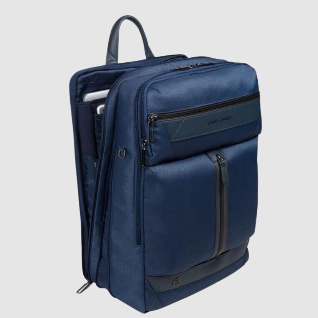 Zaino PIQUADRO Pelle e Tessuto Porta Pc 14 e Tablet Linea Trakai Blu
