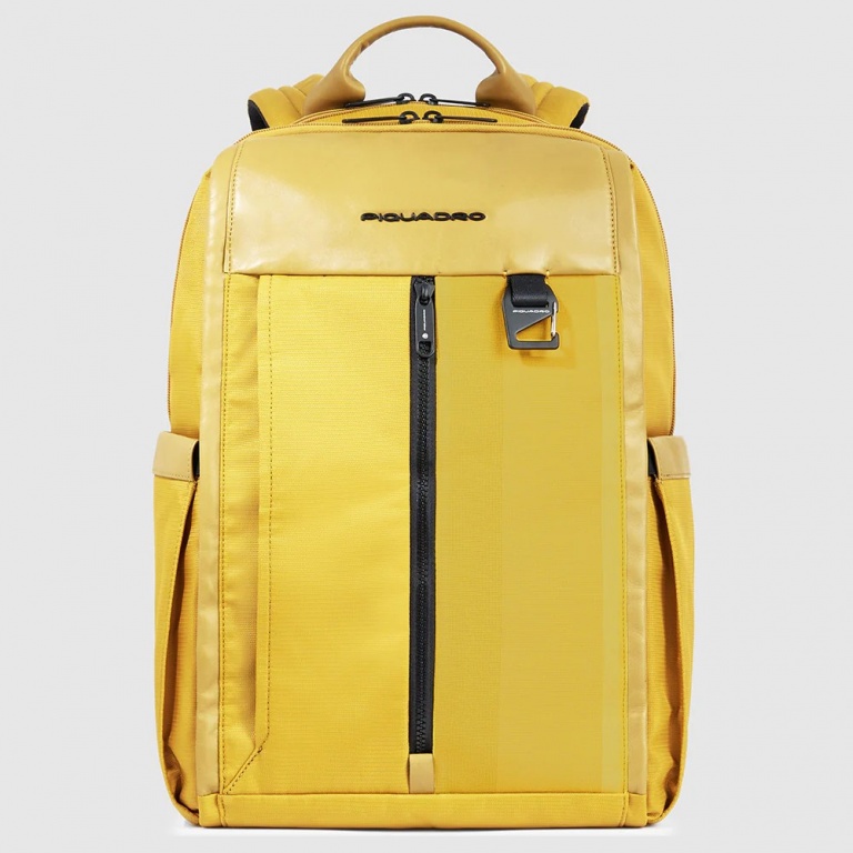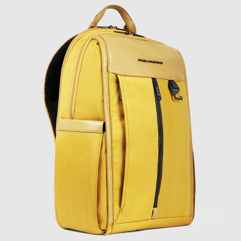 Zaino Piquadro porta Computer 15,6 in Tessuto Riciclato e Pelle Steve Giallo