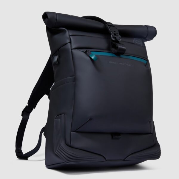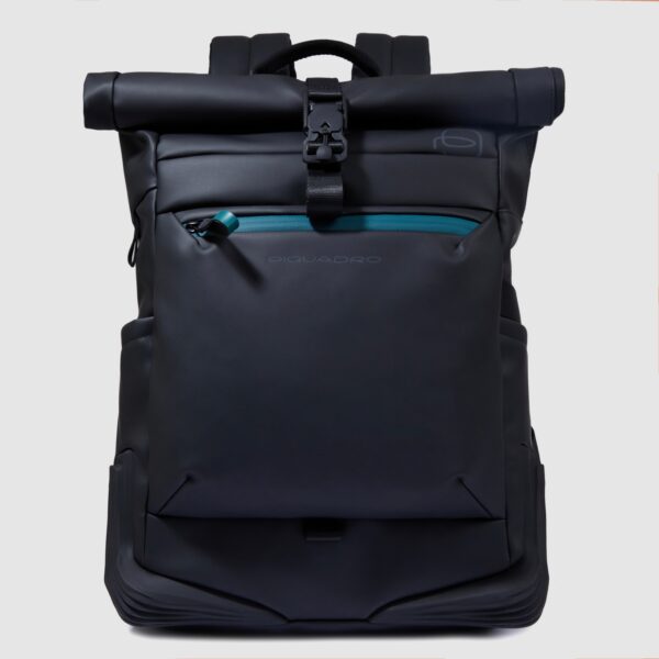 Zaino Piquadro Roll-Top Porta Computer 15,6 in Tessuto Riciclato Corner Nero