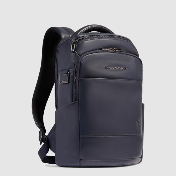 Zaino uomo personalizzabile in pelle porta pc e iPad®mini con portaocchiali, tasca per Piquadro Smart Tracker, protezioni antiurto e RFID