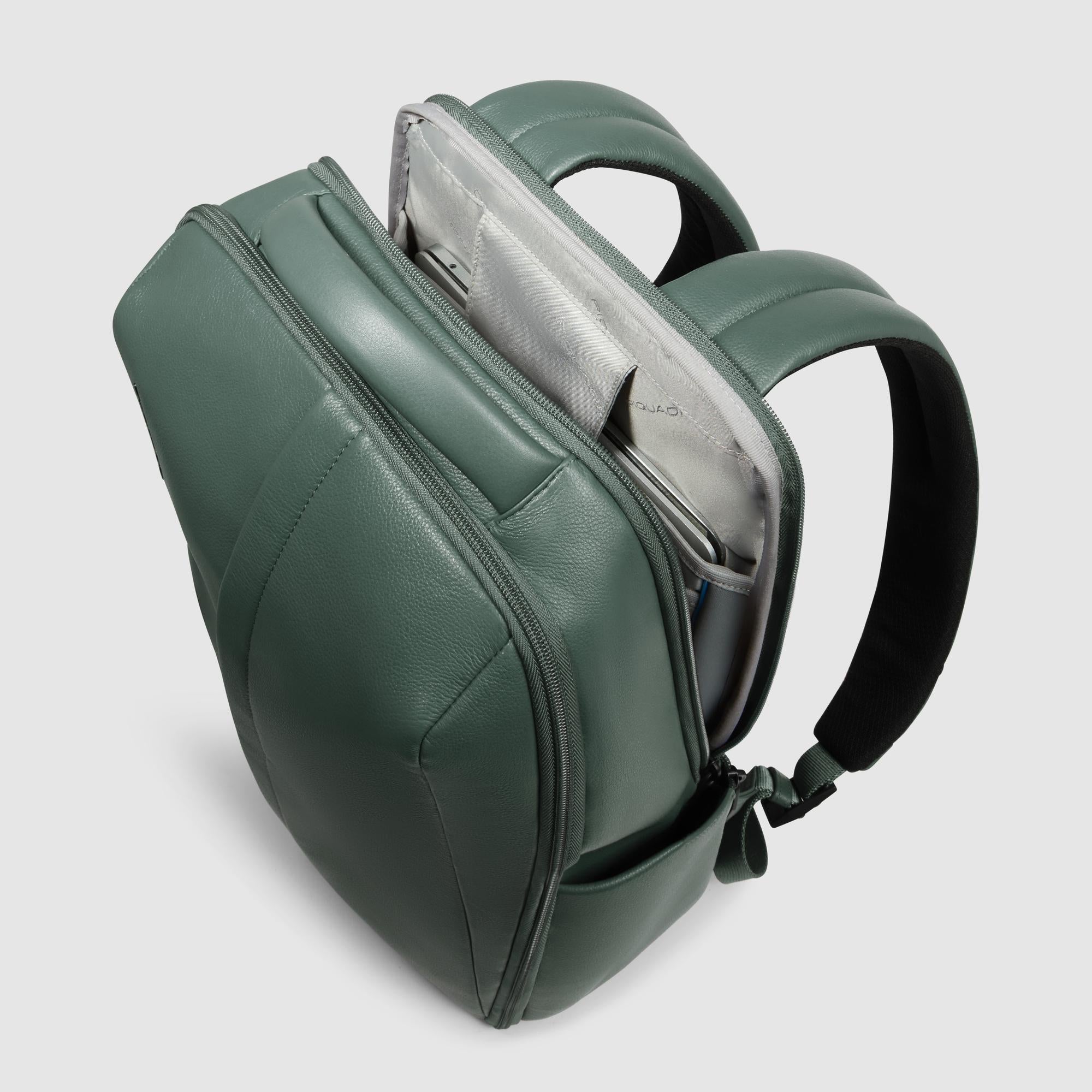 Zaino uomo in pelle porta pc e iPad® con sistema di sicurezza antifurto, portaocchiali, tasca per Piquadro Smart Tracker, protezioni antiurto e RFID