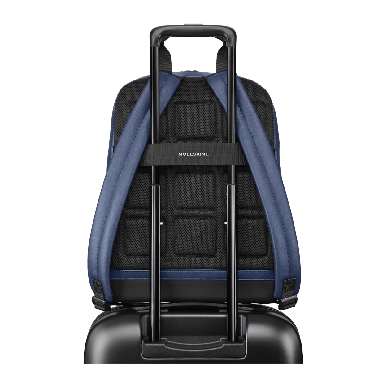 Fodera interna azzurra con motivo Moleskine, per una migliore visibilità del contenuto (100% poliestere).