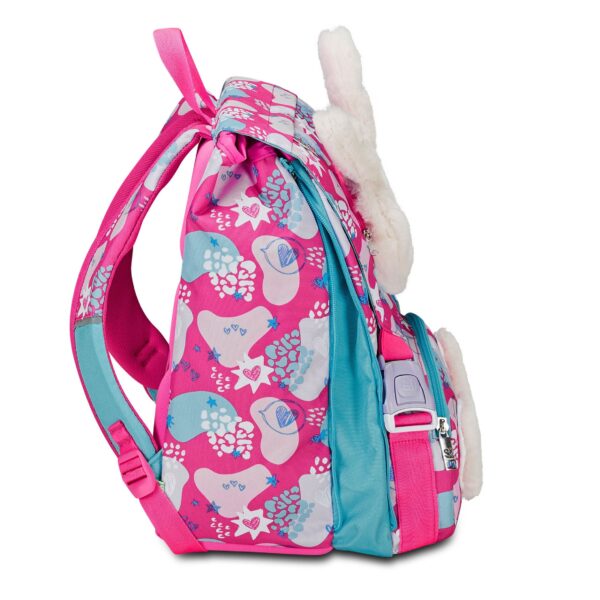 - Altre caratteristiche: Zaino estensibile tramite zip laterali, dotato di inserti rifrangenti. Zampine imbottite in applicazione sulla tasca frontale con ricamo a cuore