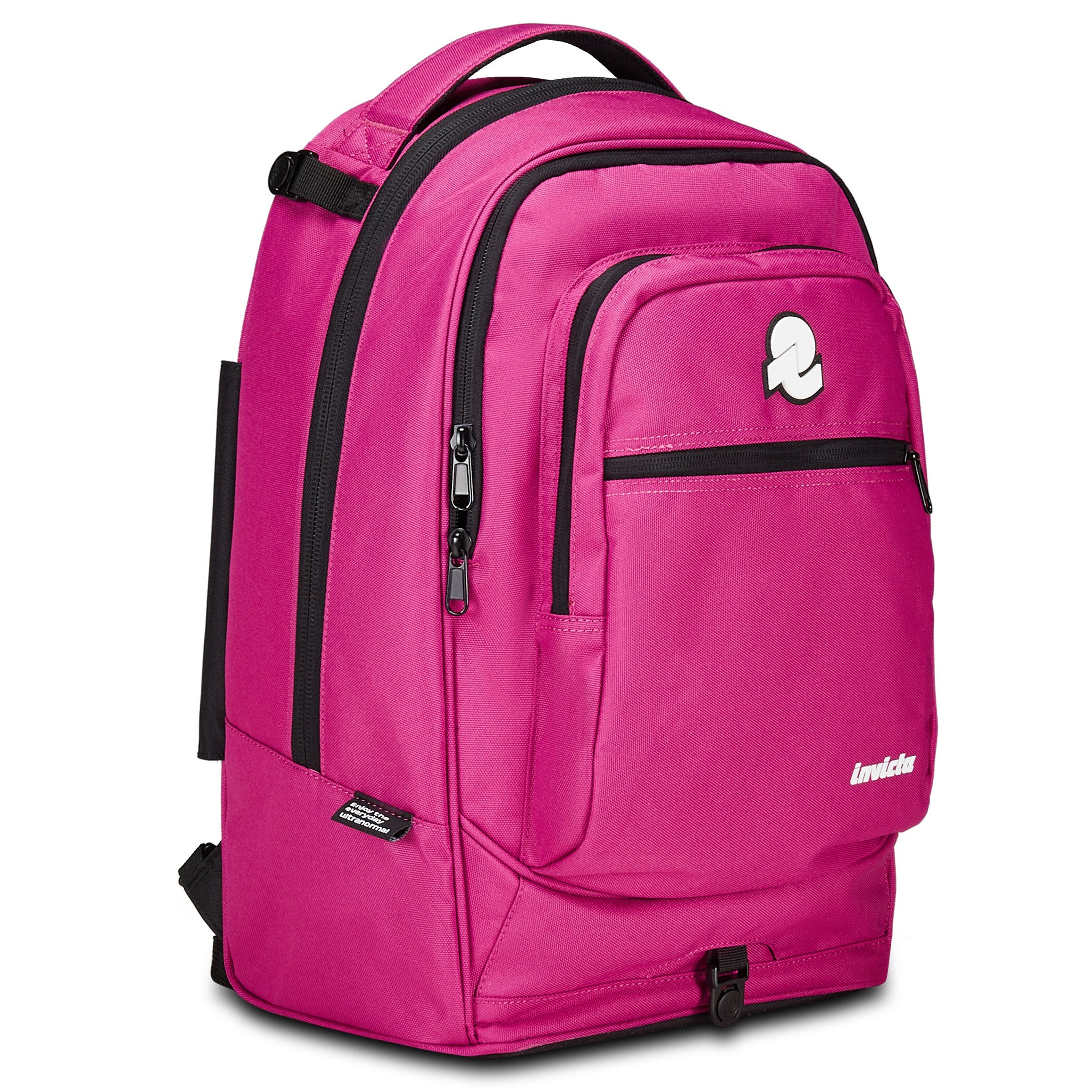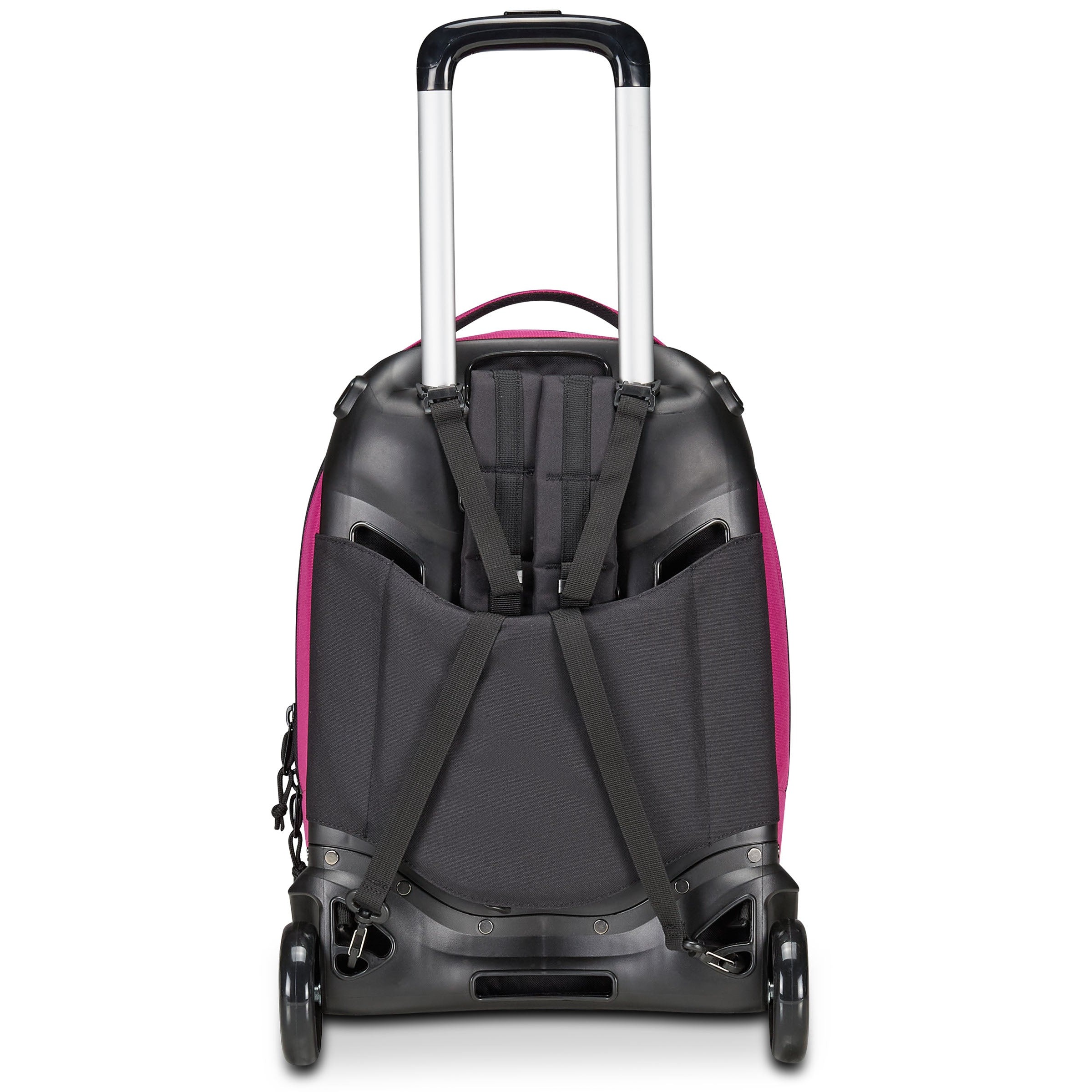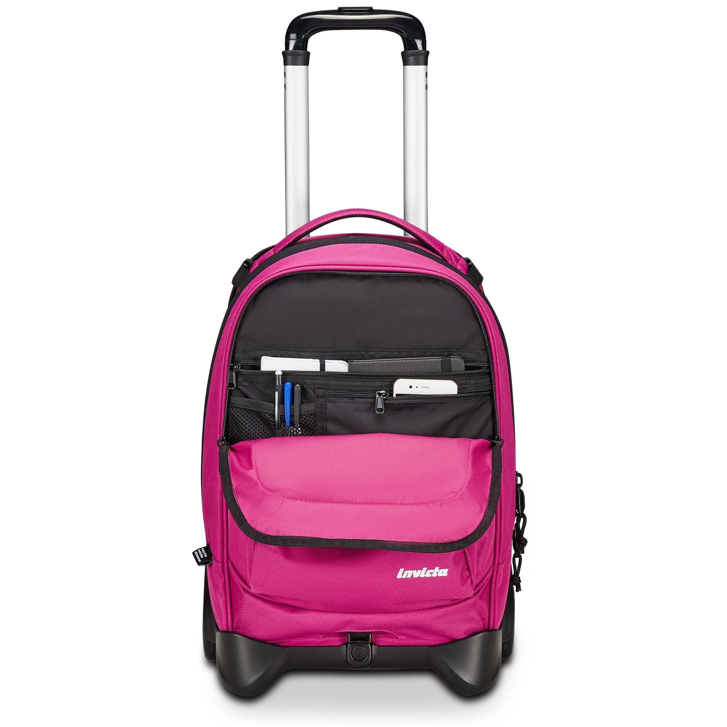 Ruote da 100 mm, spallacci a scomparsa totale nello schienale quando utilizzato come trolley, barra doppia telescopica con doppia regolazione, zaino staccabile dalla struttura del trolley stesso tramite fibbie laterali, fondo rigido antiurto con piedini antiribaltamento, tirazip con cordino, patch invicta, logo invicta in serigrafia, etichetta bandierina alta definizione, crossover system